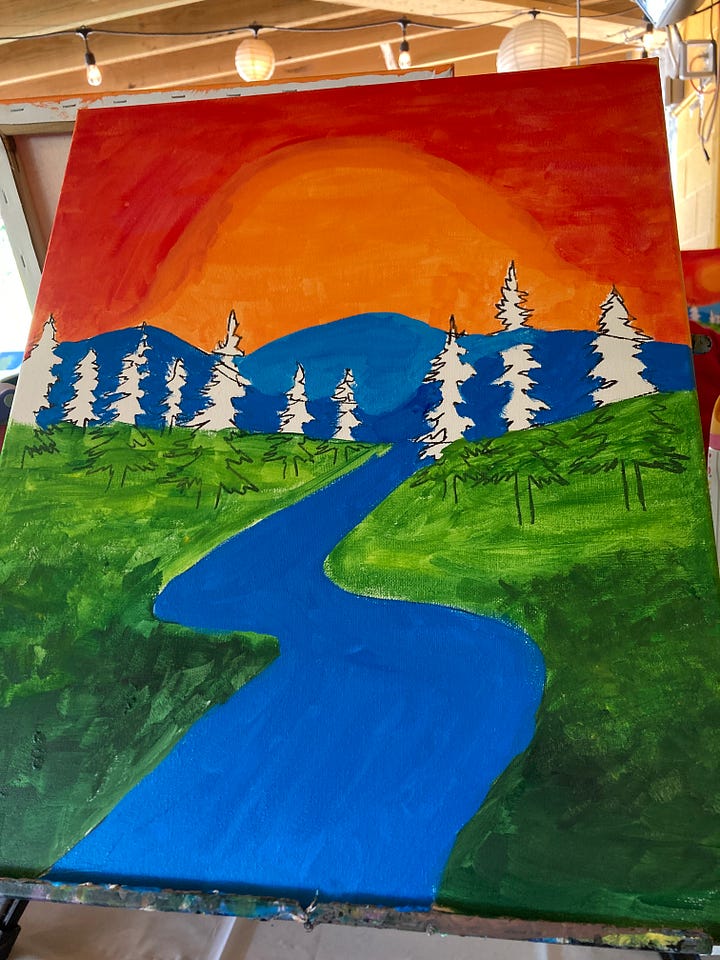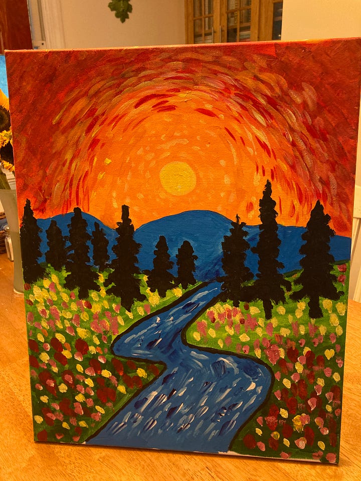 It was so much fun! I went by myself, and grabbed a blackberry cider (my favorite), and got to painting. The basic form of it is sketched out, and then we all start painting sections together. At some point, my sky looked a bit apocalyptic (who knew mixing colors was so tricky?!) but one of the teachers came over and helped out. I have it hanging now in my office and every time I glance at it, I smile. I am so glad I finally did it! Would I do it again? Maybe. Two women sat at my table, and they said they do these classes all the time, and have walls filled with their art. I love that.